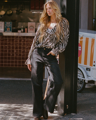The Zevra Blouse in Washed Charcoal is a playful take on effortless style. Crafted from a soft cotton viscose blend with a unique custom Spell print, it features a charming neck ruffle and elasticated cuffs for a touch of flirty ease. Perfect for day-to-night wear, this blouse adds a whimsical edge to your wardrobe while keeping you comfortable and chic.